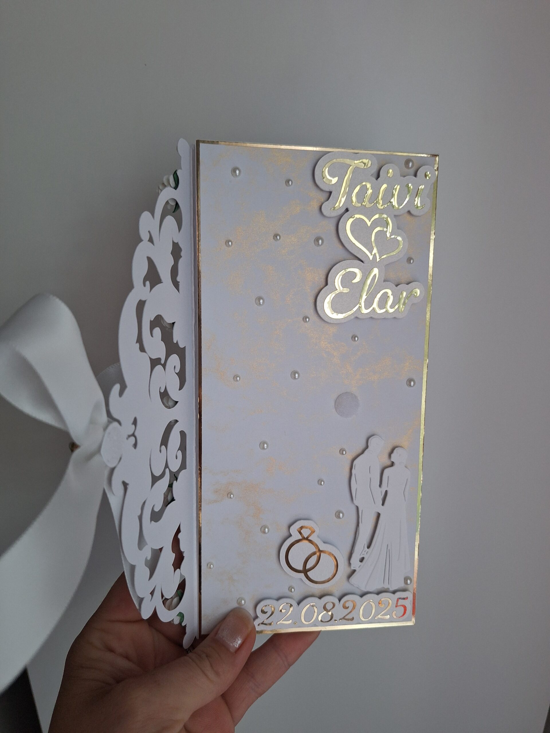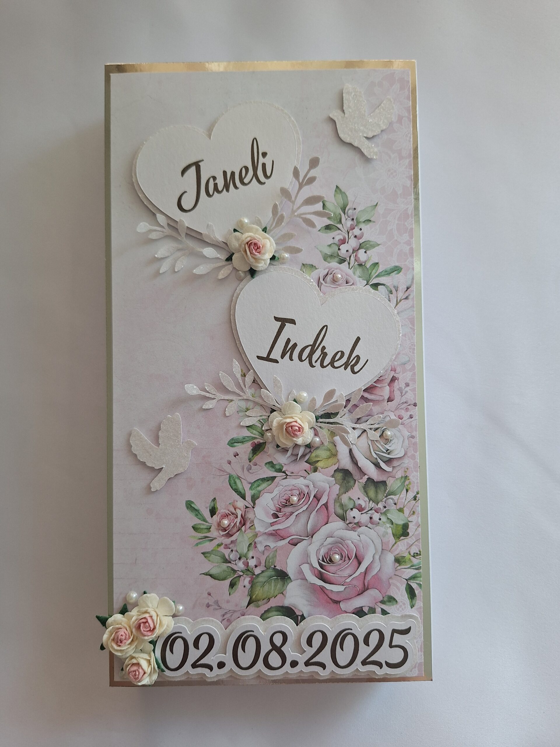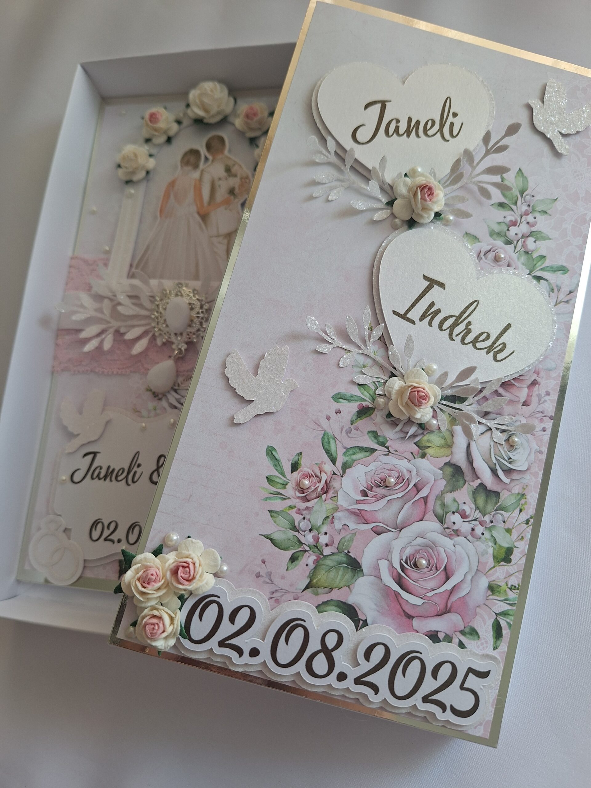 Kaardile saame lisada pruutpaari nimed ja pulmakuupäeva.