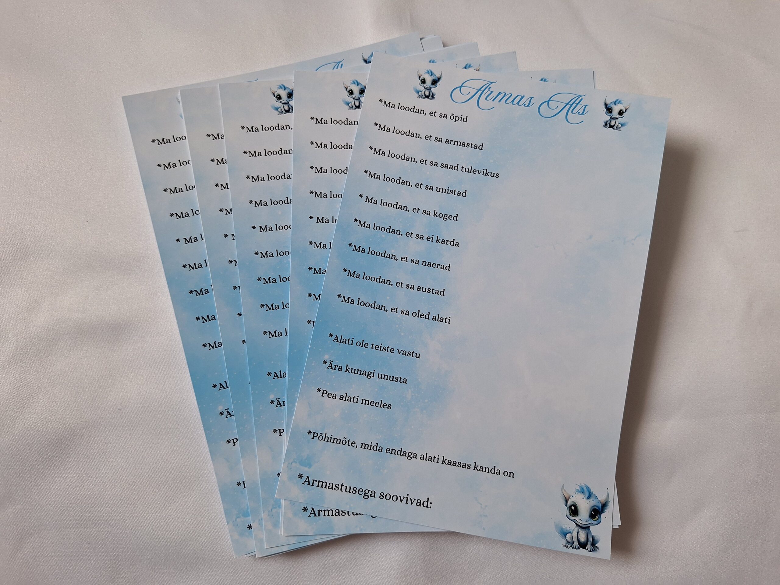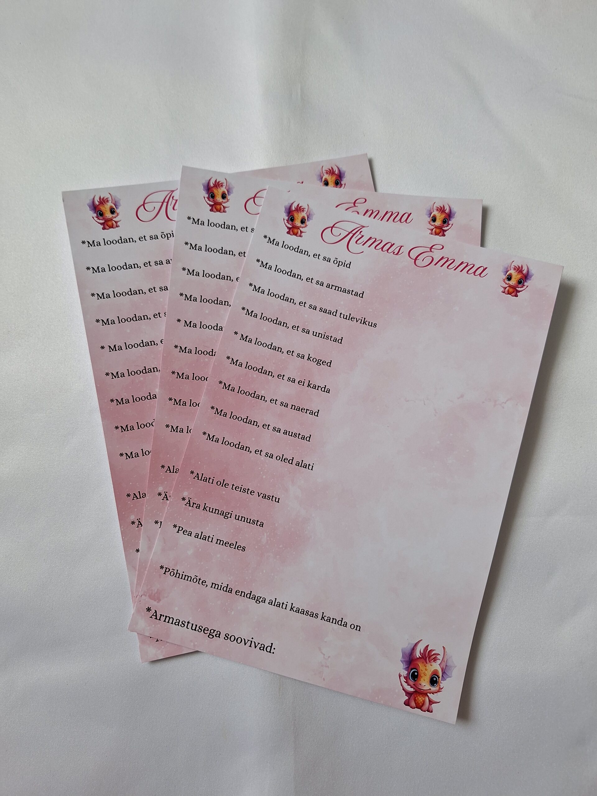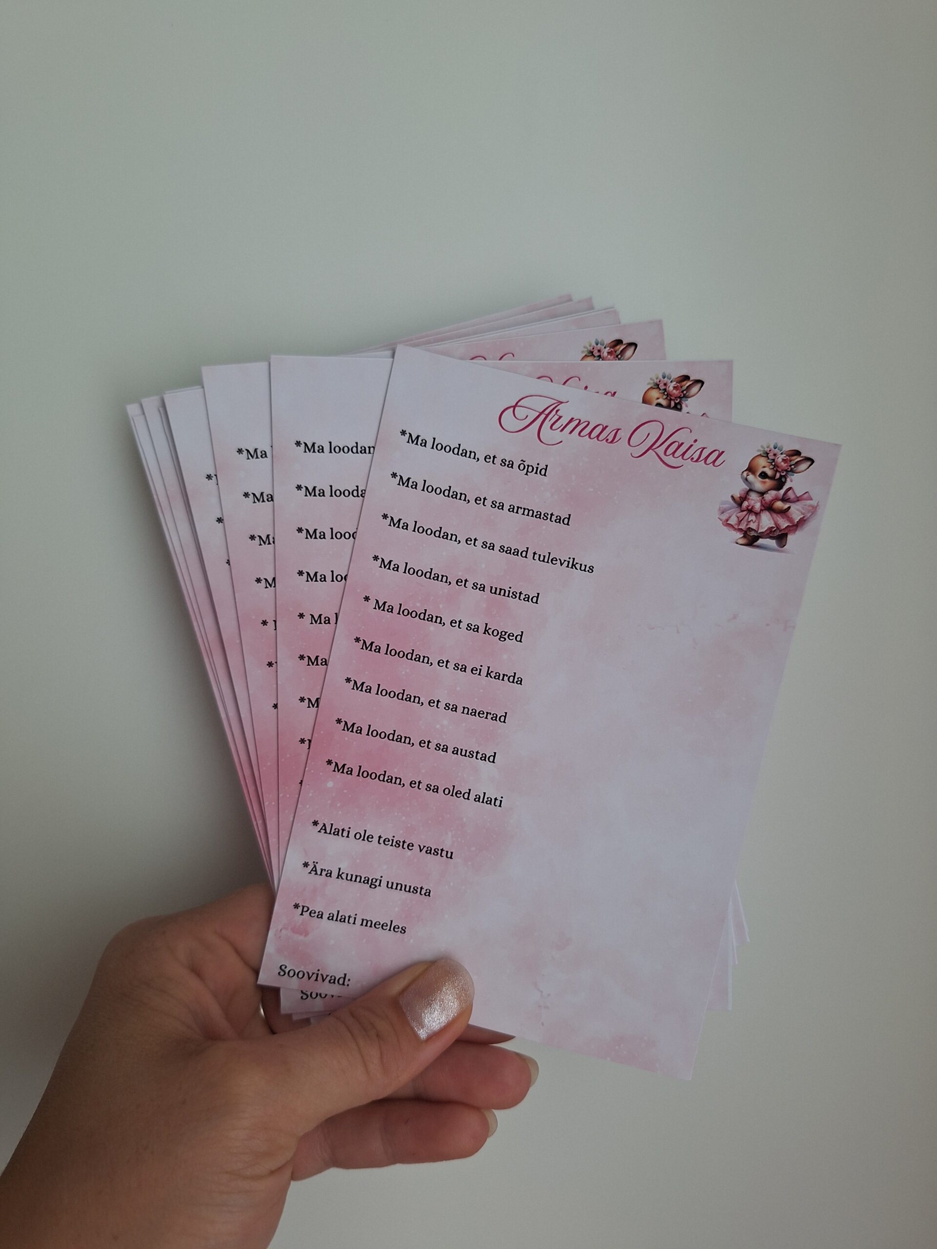 Laste sünnipäevadeks mõeldud soovikaardid, külalistele täitmiseks.